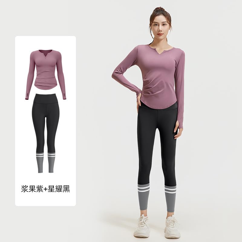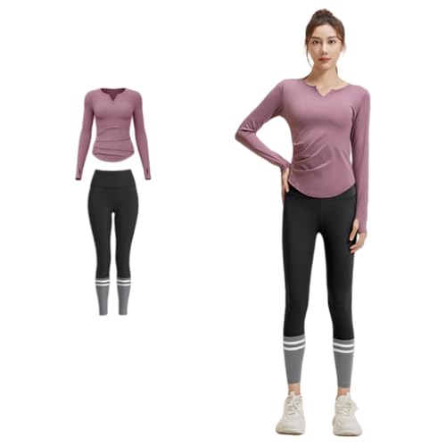 GuLiNiao - طقم ملابس رياضية للنساء من جولينياو، مكون من بنطلون لجينجز ضيق بدون خياطة + توب بأكمام طويلة لليوجا والجيم، طقم من قطعتين