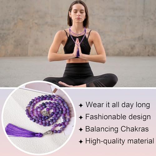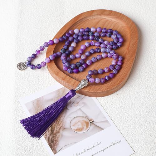 GVUSMIL - سوار لف وسلسلة لليوجا مكونة من عدد 108 خرز مالا 8 ملم من جي في يو اس ام اي ال وانسيال بدلايات مجوهرات الاحجار الكريمة الطبيعية للنساء والرجال, حجر كريم,