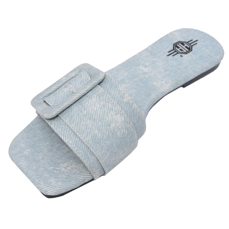 HA - اتش ايه شبشب مسطح بابزيم مربع للنساء، لون ازرق، مقاس 39 EU