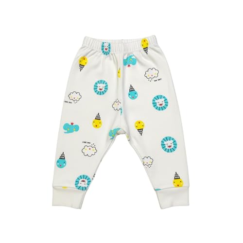 Habi life - ملابس داخلية للأطفال بتصميم بنطلون نوم من القطنية مع طبعة حيوانات وحزام خصر مرن، من هابي لايف، لون أبيض ومتعدد الألوان، طقم من 3 قطع
