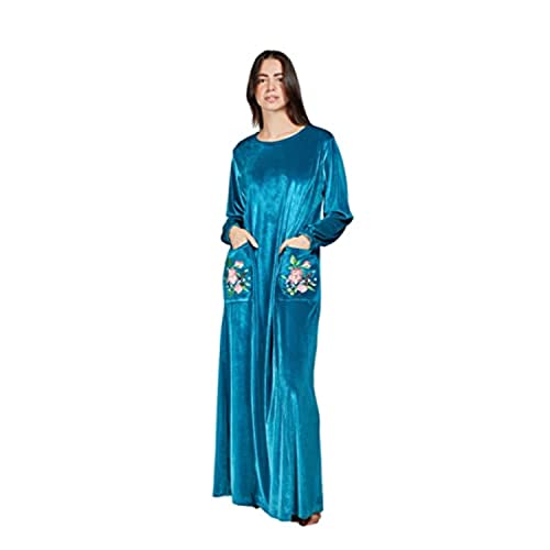 Habiba - جلابية هابيز بتطريز على الجيب وكم مرن مقاس -1004، لون رمادي, قرميدي, 2XL