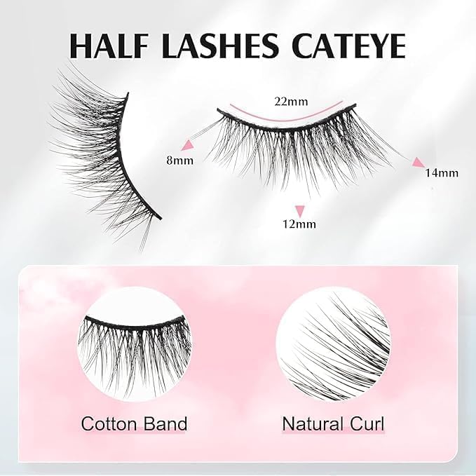 - 5 أزواج من الرموش النصفية - هذه الرموش الصناعية ثلاثية الأبعاد مصنوعة يدويًا من فايبر خفيفة الوزن، ما يجعلها ناعمة للغاية ورقيقة ولطيفة على البشرة، بنعومة تشبه رموشك الطبيعية تمامًا. الرموش النصفية أسرع في الارتداء من الرموش الصناعية التقليدية.