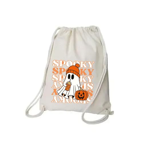 Generic - شنطة ظهر برباط للهالوين بتصميم شبح مخيف ويقطين من القماش، رمادي فاتح