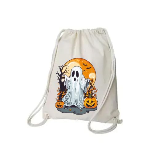 Generic - حقيبة ظهر برباط على شكل شبح الهالوين، حقيبة قماشية بيضاء بتصميم يقطين وشبح
