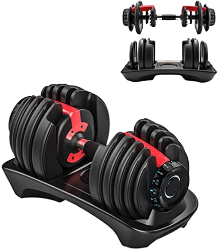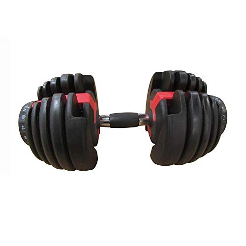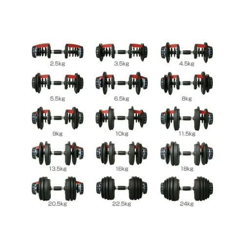 - الدمبل القابل للتعديل هو معدات عملية وكاملة، حيث يمكنك ضبط وزن الدمبل الخاص بك الذي يتراوح من 2.5 كجم ويمكن أن يصل إلى 24 كجم من خلال مفتاح اختيار موجود على جانبي الجهاز.