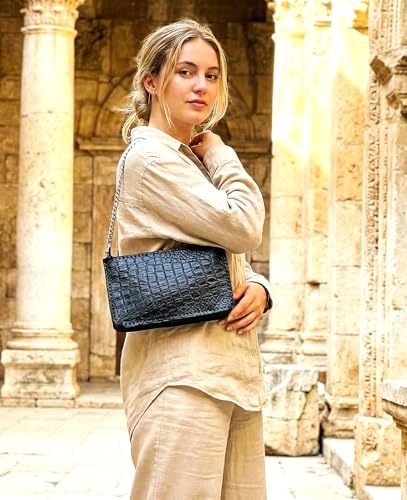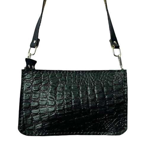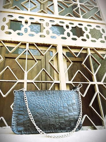 Generic - شنطة جلد طبيعي هاند ميد (صغيره) ولها 2 دراع جلد أسود مع سلسله كلاسيك