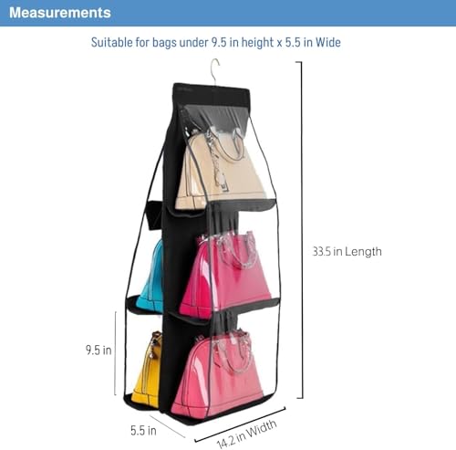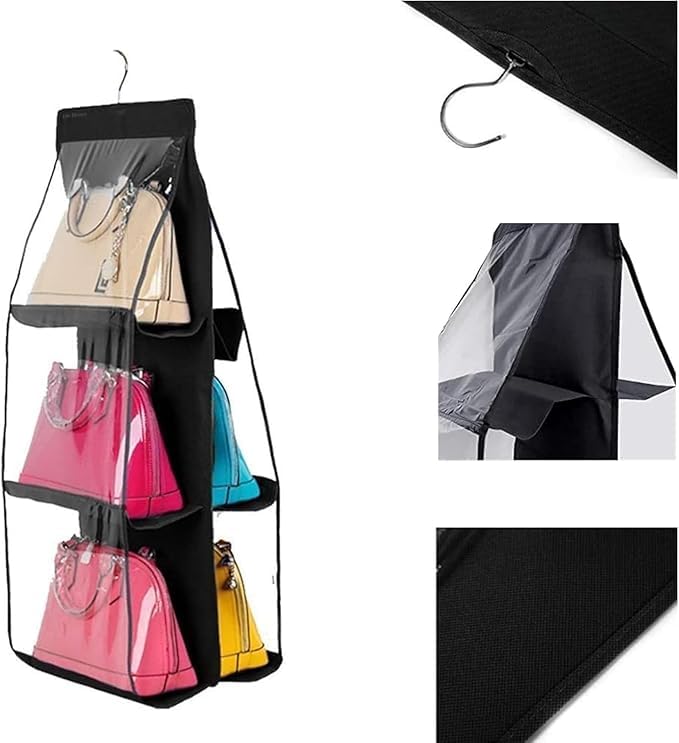 fashion mania - منظم حقيبة يد معلق للخزانة، منظم شماعات حقيبة، حقيبة تخزين حقيبة يد بـ 6 جيوب
