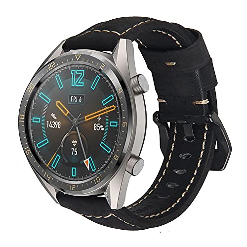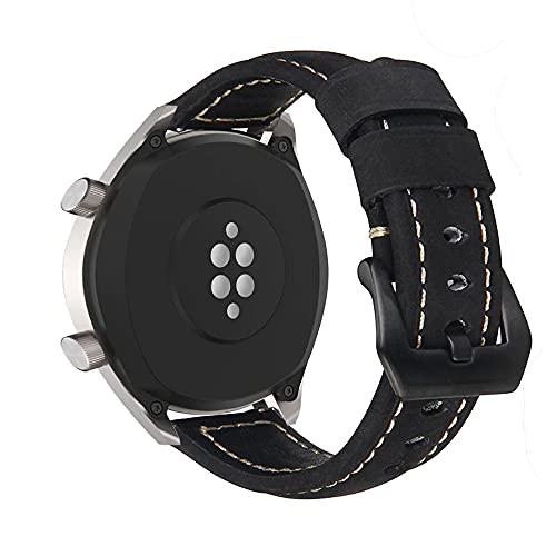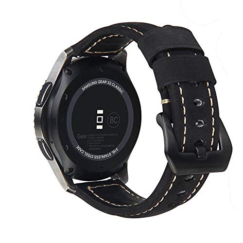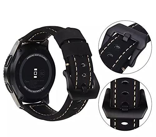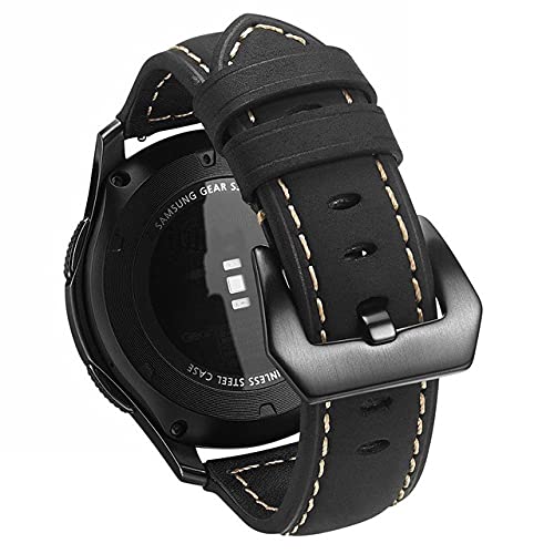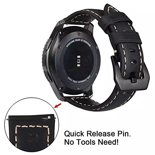 Bikson - سوار جلد مصنوع يدويا مع ابزيم ستانلس ستيل اسود ودبابيس سريعة الفك لساعات فوسيل 22 ملم - 22 ملم - اسود
