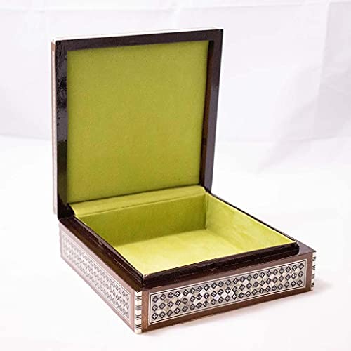 Handmade - علبة مجوهرات على شكل صدفة مربعة، الخشب، متعدد الألوان، من هاند مايد