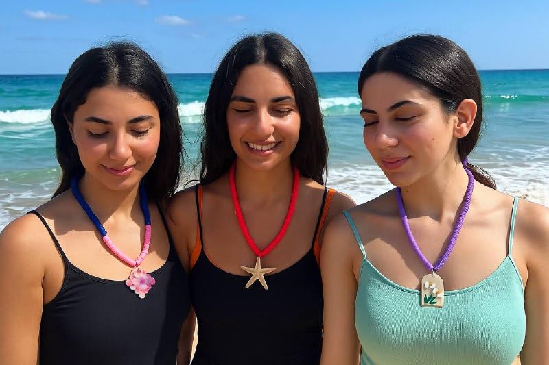 عام - قلادة شاطئ بتصميم نجم البحر مصنوعة يدويًا، خرز من طين البوليمر، الوان متعددة
