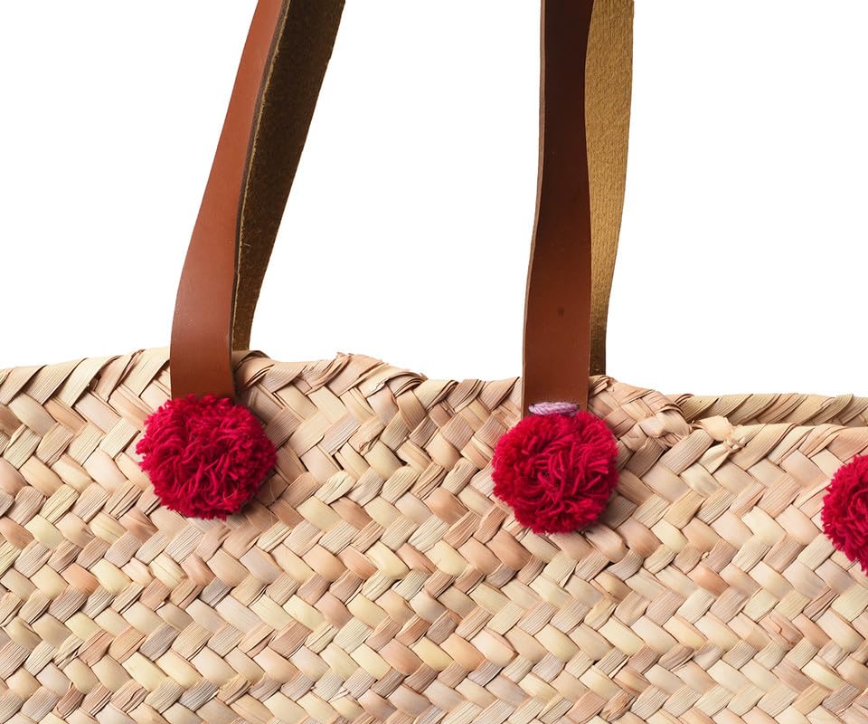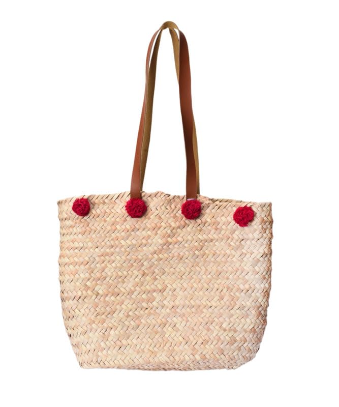 Nubia Egypt - شنطة شاطئ مصنوعة يدويا من الخوص مع يد من الجلد للنساء