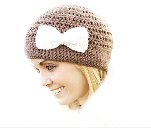 Generic - أيس كاب شتوى أنيق هاندميد بفيونكة اللون كاكاوى وأبيض، متعدد، مقاس واحد، للبنات