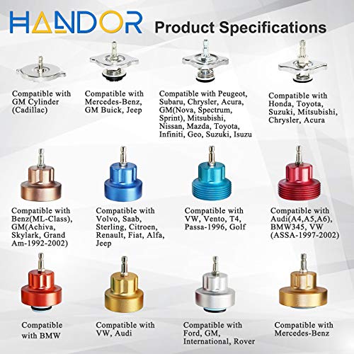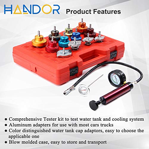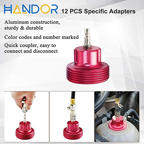 Handor - مجموعة أدوات تسرب ضغط المبرد 14 قطعة من Handor ، مجموعة أدوات ضغط التبريد بالضغط الفراغي مع مضخة يدوية ومحولات من الألومنيوم لنظام تبريد السيارات ، اختبار تسرب خزان المياه