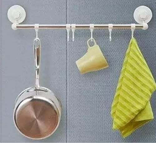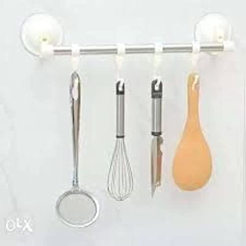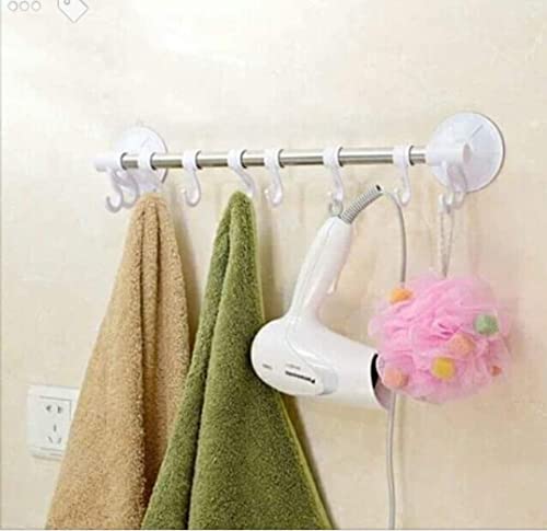 Spaceshoop - شماعة معدنية سهلة التركيب بضغط الهواء، 4 خطاف، أبيض، الحد الأقصى للوزن الموصى به: 5.0 كيلوجرام