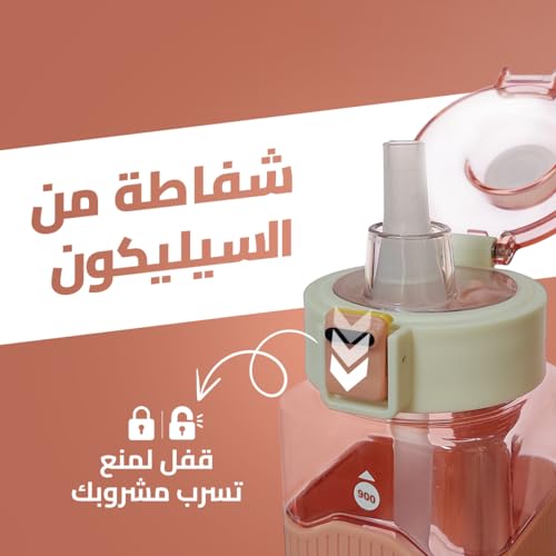 - شفاطة مانعة للتسرب وخالية من مادة الـ BPA: مجهزة بشفاطة مانعة للتسرب لسهولة الشرب دون انسكابات، في حين أنها مصنوعة من مواد خالية من مادة الـ BPA، مما يضمن صحتك وسلامتك.