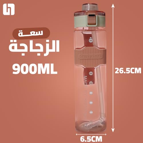 - محمولة وأنيقة: تصميم عصري ومريح يجعل زجاجة المياه بسعة 900 مل مثالية للأنشطة الخارجية والتمارين الرياضية والاستخدام اليومي. بإمكانك اصطحابها إلى أي مكان.
