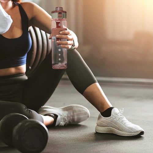Hanso 1 - زجاجة مياه رياضية مانعة للتسرب بشفاطة من هانسو، زجاجة بتصميم محمول، خالية من مادة الـ BPA ومثالية لصالة الألعاب الرياضية والأنشطة الخارجية والاستخدام اليومي، 900 مل (وردي)، بلاستيك