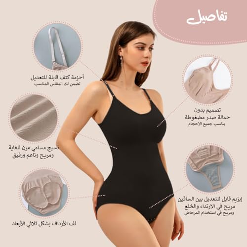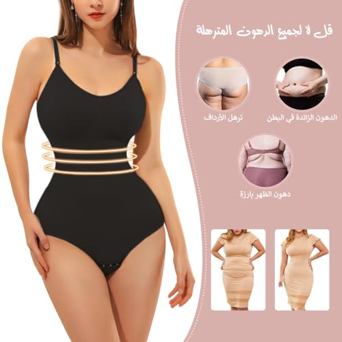 Hanso 1 - سالوبيت بكباسين للنساء من هانسو لتخسيس ونحت الجسم بتصميم مخدة لحماية منطقة الصدر من قماش منسوج مرن وفتحة بين الفخذين مناسب لنحت الخصر والورك