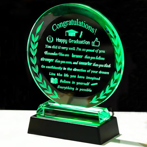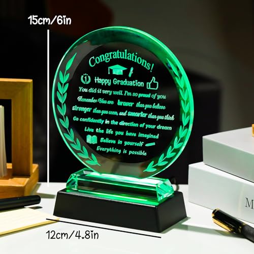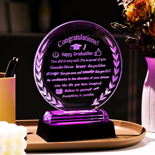 Arikyrist - هدايا تخرج سعيدة للنساء والرجال لفئة 2025 من الكريستال مع قاعدة اضاءة LED، تذكار تخرج ملهم للجامعة والكلية والمدرسة الثانوية ودرجة الماجستير للرجال والنساء