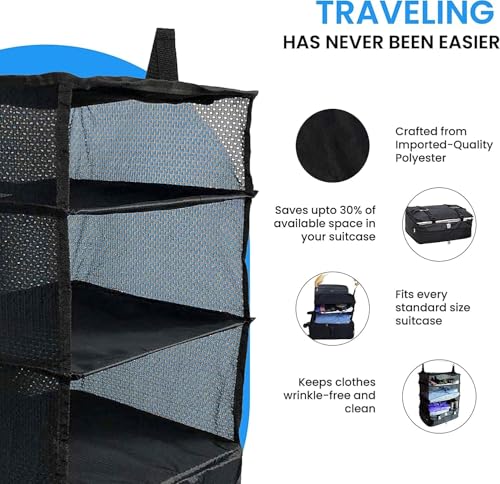 Generic - منظم سفر معلق من هابي هوم - منظم الملابس لشنط السفر قابل للطي بمقاس XL (لون أسود)