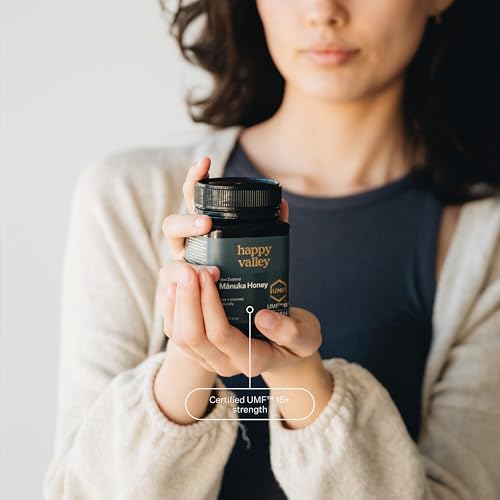 - عسل مانوكا بتصنيف UMF15+ (MGO 514+) يأتي من الغابات المكشوفة في نيوزيلندا. عسل المانوكا من هابي فالي بتصنيف UMF هو عسل معتمد من المختبرات وحاصل على تصنيف UMF 15+، ما يعادل ميثيل جليوكسال (MGO) 514+