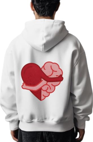 Generic - سويت شيرت بغطاء للرأس مطبوع عليه Heart and Brain Hugging باللون الأبيض
