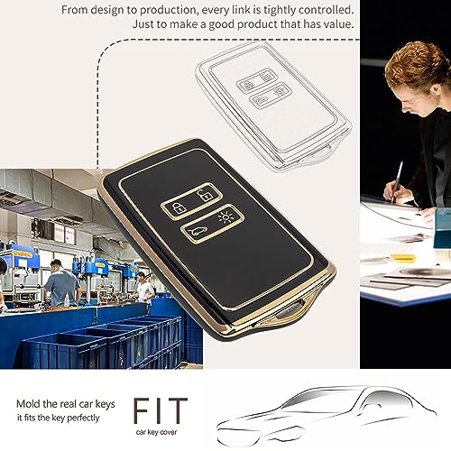 Heart Horse - جراب مفتاح ريموت كنترول السيارة ب4 ازرار لرينو كادجار من هارت هورس، غطاء فوب سيليكون البولي يوريثين المقاوم للحرارة متوافق مع سيارات رينو فلونس داستر ميجان سليو، تصميم فنوم بين، اسود