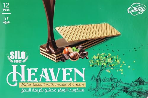 Heaven - بسكويت ويفر محشو بكريمة البندق من هيفين، 60 جرام - مجموعة من 12 قطعة