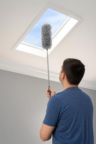 Generic - منفضة غبار تلسكوبية شديدة التحمل من المايكروفايبر برأس قابل للانحناء والغسل ومقبض من الفولاذ المقاوم للصدأ لتنظيف الأسقف/شباك العنكبوت/المراوح/الجدران/الزوايا العالية/الأثاث، قابلة للتمديد حتى 3 م