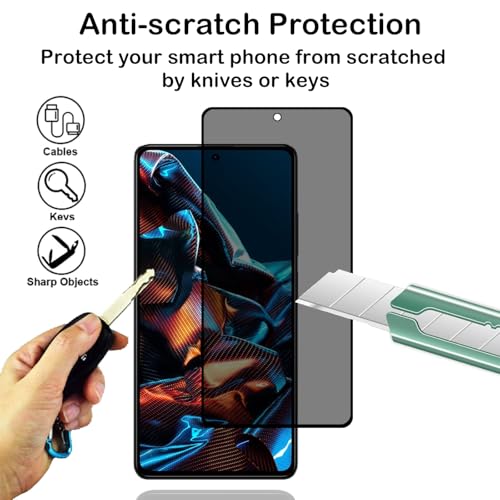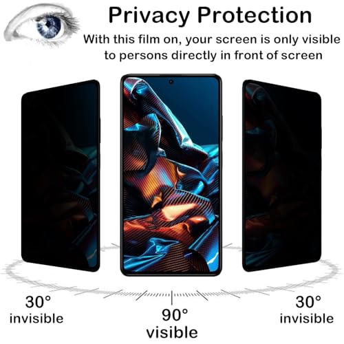 Hejkaoe - شاشة حماية للخصوصية من الزجاج المقوى بدرجة صلابة 9H سهلة التركيب بتغطية ثلاثية الأبعاد مقاومة للكسر والخدش والتجسس خالية من الفقاعات لشاومي بوكو X5 برو شبكة الجيل الخامس 5G من هيجكاوي، من قطعتين