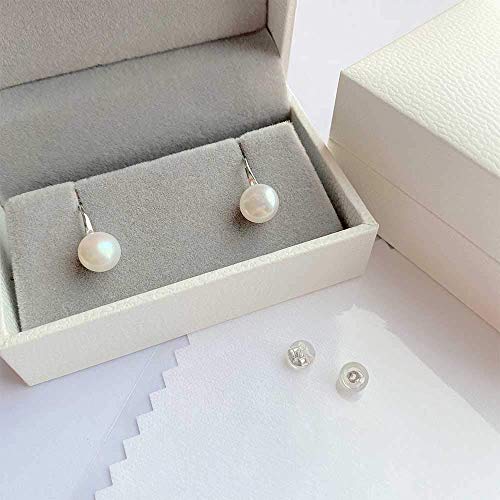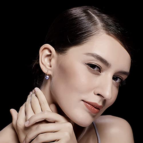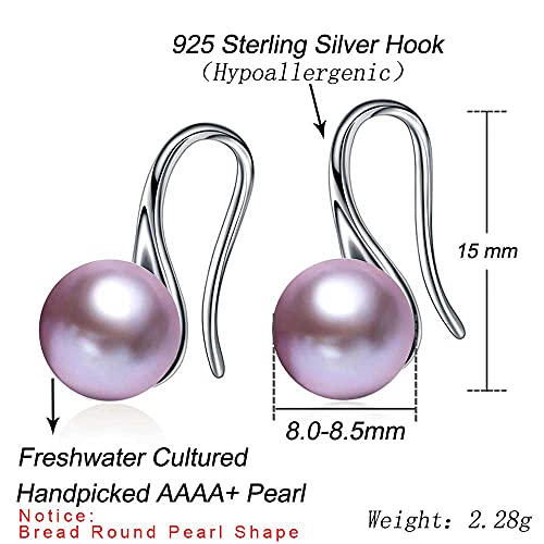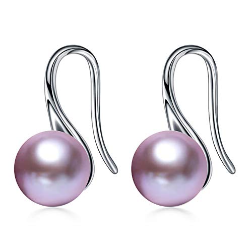 HENGSHENG - حلق متدلي فضة استرليني 925 بحلقة مطرزة بلؤلؤ حقيقي عالي الجودة مقطوف يدويا للبنات والنساء من هينجشينج مقاس 8.0-8.5 ملم معدن زركونيا مكعب هينغشنج متعدد الألوان