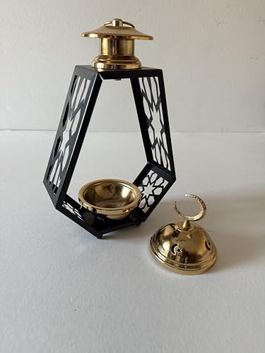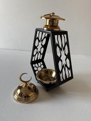 Generic - مبخرة معدنية سداسية الشكل بتصميم نمط مزخرف، أسود وذهبي