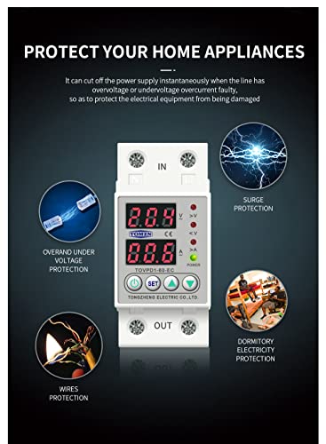 Generic - جهاز حماية للجهد والتيار المرتفع والمنخفض 2 شاشة رقمية وامكانية الضبط 40 أمبير
