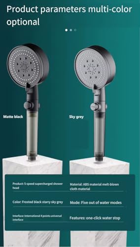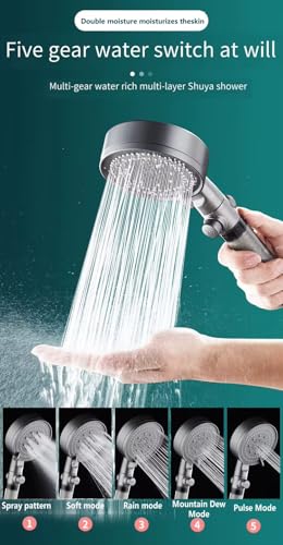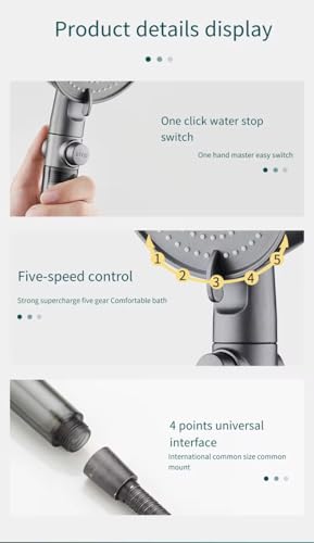 Generic - (دش عالي الضغط) راس دش - موفر للمياه وضغط عالي - 5 انماط رش - دش يدوي مزود بزر ايقاف تشغيل