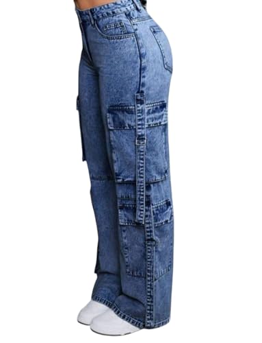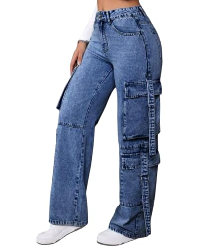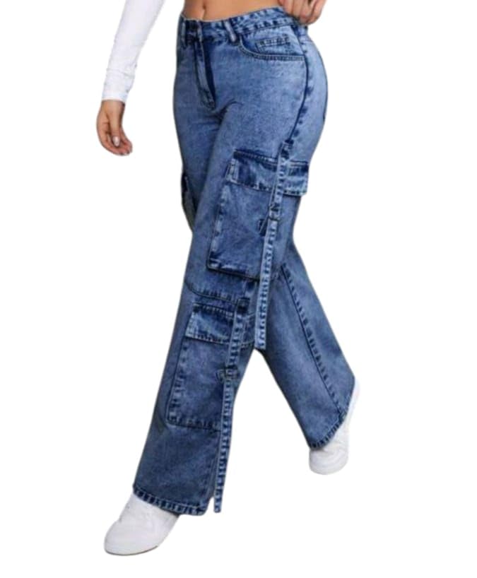 Generic - بنطلون جينز كارجو بخصر مرتفع