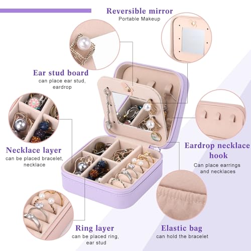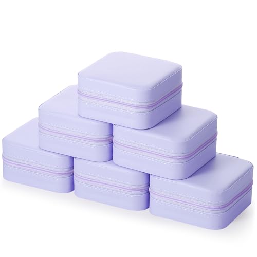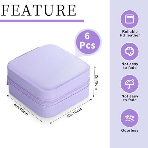 - حافظة مجوهرات محمولة للسفر: ستحصل على 6 صناديق مجوهرات صغيرة بلون أرجواني فاتح مع مراية في المنتصف. الأبعاد 10 × 10 × 5 سم. منتج صغير وخفيف الوزن وسهل الحمل حيث يمكنك وضعه في شنطة اليد أو شنطة السفر أثناء التنقل أو السفر أو العمل