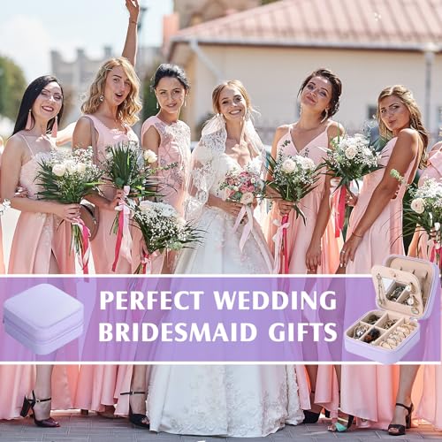 Hillban - صندوق مجوهرات هدايا وصيفات العروس مع مراية من هيلبان، منظم تخزين علبة مجوهرات صغيرة للسفر من جلد صناعي للنساء والبنات، جلد صناعي