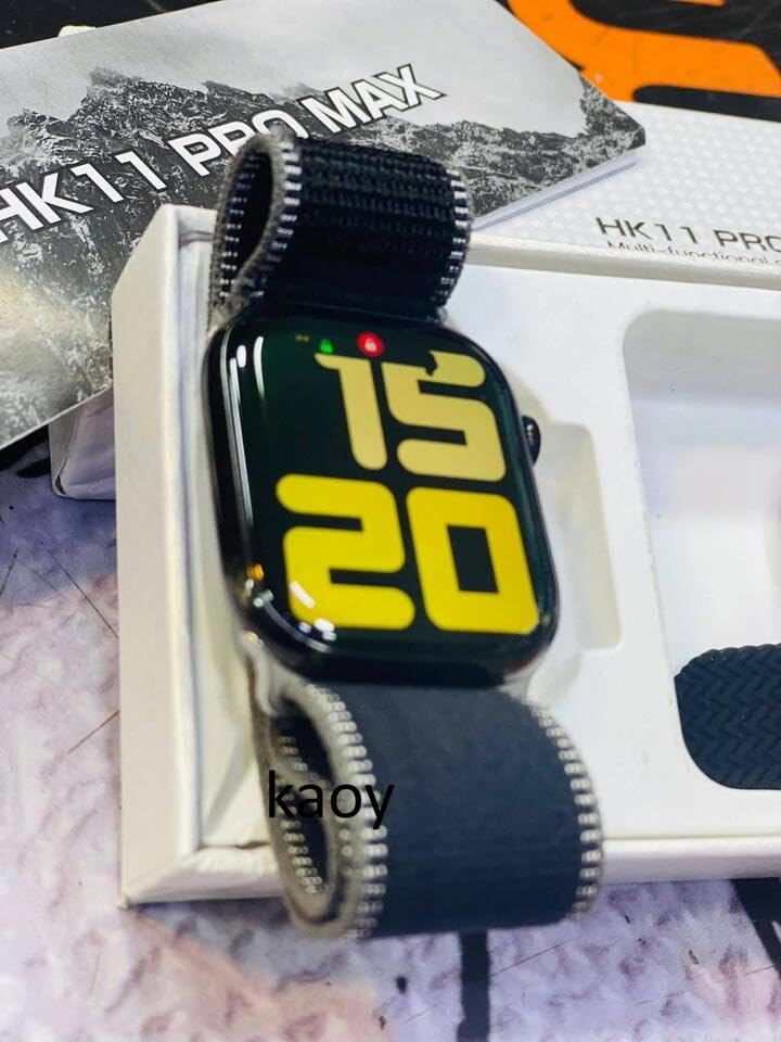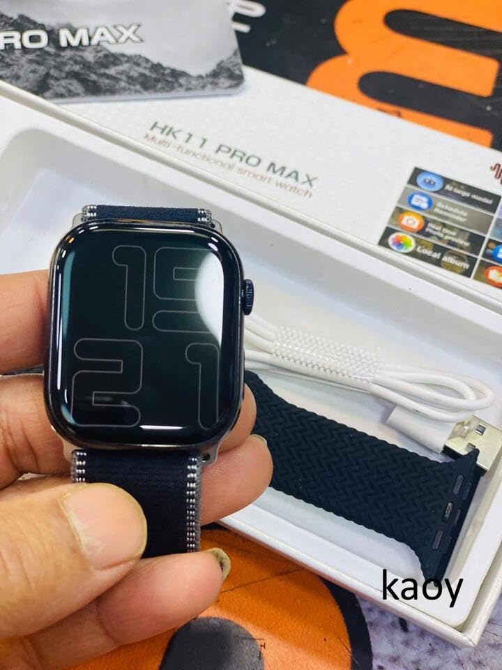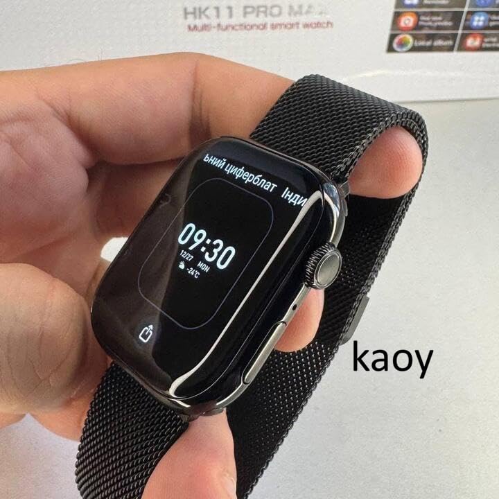 Generic - ساعة ذكيه اتش كيه 11 برو ماكس ( HK 11 pro max ) بتفتح كتب الكترونيه - تسجل صوت من عليها- تربط الساعه بالسماعه -NFC - بلوتوث - حزامين( سيليكون وقماش) - شاحن لاسكي ( اسود )