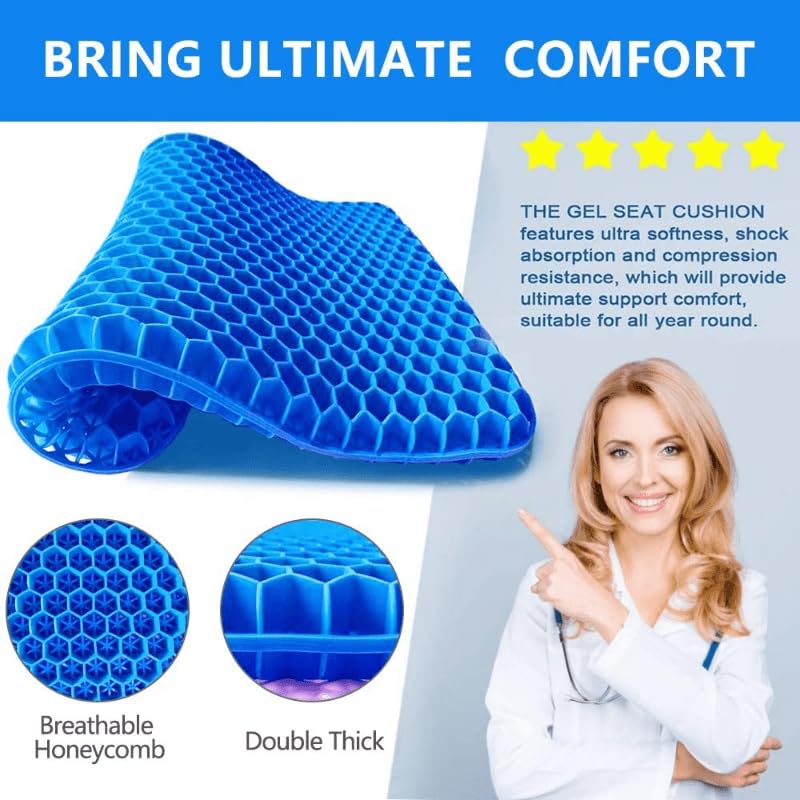 - وسادة جل متطورة لتخفيف الضغط - تصميم مبتكر على شكل قرص العسل يساعد وسادة الكرسي الجل على تحديد جسمك لتقليل الألم والضغط والتوتر على الوركين والعمود الفقري والعصعص (عظم الذنب) وأسفل الظهر لتحسين الراحة.