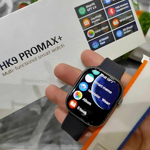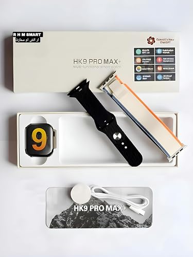 R H M SAMRT RHM Smart - ساعة ذكيه اتش كيه 9 برو ماكس بلس(+HK 9 pro max) للرجال والنساء،بتفتح كتب الكترونيه -تسجل صوت من عليها - NFC- تدعم اللغه العربيه - بلوتوث -حزامين-مقاومة للماء-شاحن لاسلكى _اسود_