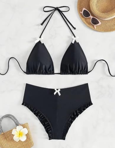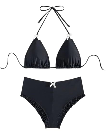 هنادي - بكيني قطعتين باللون الاسود – خامة زبدة كوري ليكرا عالية الجودة، التصميم الأنيق والمريح – HN 6041، مقاس واحد