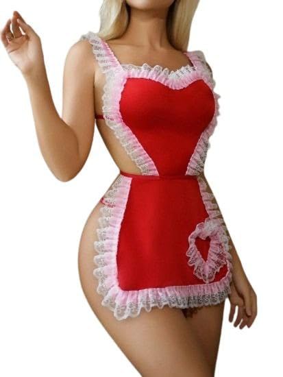 هنادي - قميص نوم تنكرى الشغالة الاحمر بخامة زبدة مع المريلة والأندر وير – فرى سايز يناسب جميع المقاسات – HN 9036
