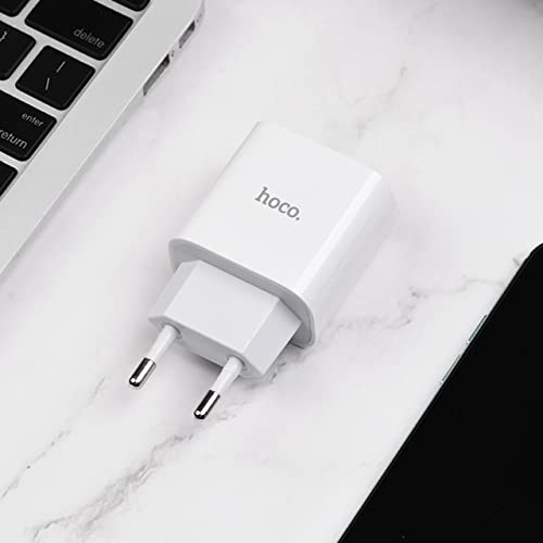 HOCO - شاحن USB سريع الشحن C76A بقابس اي يو (20 وات - 3.1 امبير - 5 فولت) لموبايل ابل ايفون وسامسونج وهواوي وشاومي واوبو من هوكو مصدر السرعة PD / كيو سي3.0 / FCP- ابيض