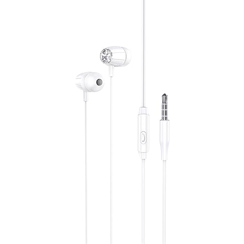 HOCO - سماعة اذن سلكية عالمية خفيفة الوزن بميكروفون من هوكو موديل M88 الطول: 1.2 متر الفيشة: 3.5 ملم متوافقة مع موبايل ايفون وسامسونج وشاومي واوبو - ابيض AUX سماعات أذن داخل الأذن، سماعات أذن سلكية