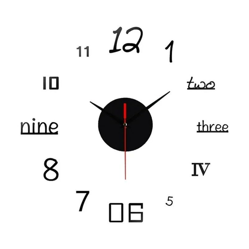Home Gallery - ساعة حائط ثلاثية الابعاد بنمط ارقام مختلطة، من هوم جالاري، خشب، أسود، تناظري