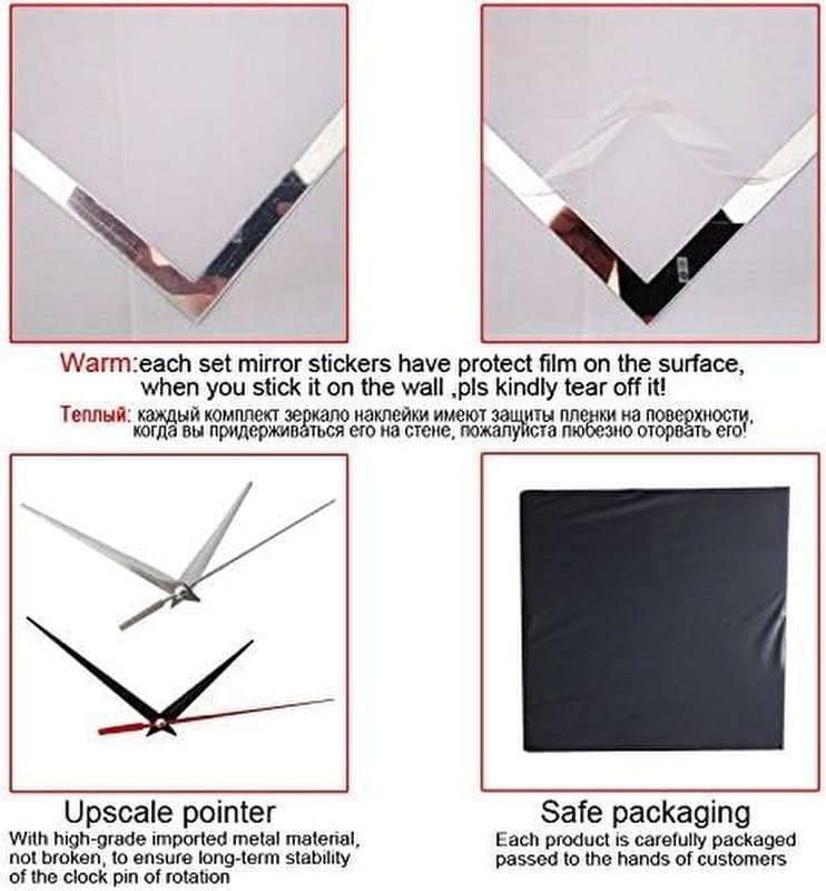 - "سهولة في التركيب - تحوي العبوة على ستيكرات ذاتية اللصق لنؤمن لك عملية تركيب سهلة. مادة غير سامة - يعتمد المنتج على خشب ليفي متوسط الكثافة وعالي الجودة. تصميم عصري - حجم كبير لديكور الحائط ويسمح سطح الخشب لغرفتك بخلق جو أنيق وعصري. يمكنك تركيبها بنفسك - يمكنك تصميم موضع وحجم الساعة حسب رغباتك، وفي الوقت نفسه، ستستمتع بتركيبها بنفسك مع عائلتك وأصدقائك"