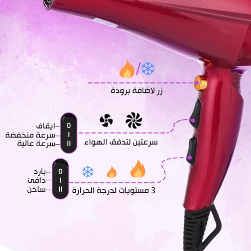 • حماية من الحرارة الزائدة من أجل السلامة: ميزات أمان مدمجة تمنع ارتفاع درجة الحرارة مما يضمن تجربة تجفيف آمنة وخالية من القلق.