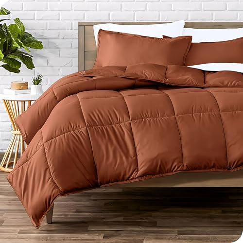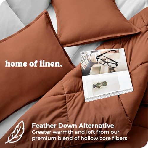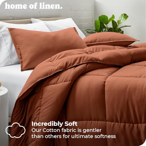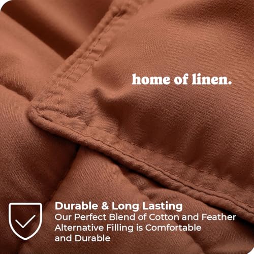 Home Of Linen - لحاف ثقيل سادة من القطن من هوم اوف لينين، بوزن 2.8 كجم وحشوة بديلة، للمراتب بقياس 1/ 1.2 متر، بني، (1.8 × 2.4 متر)