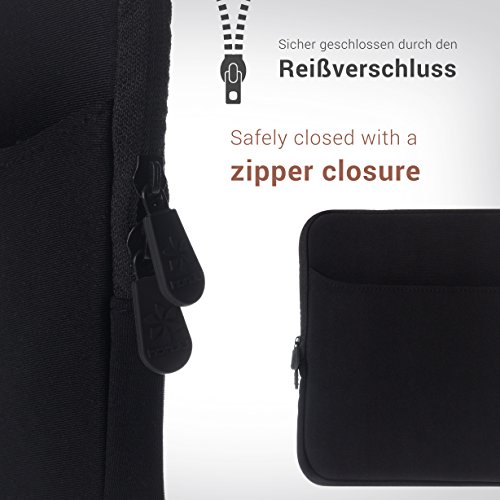 - Protective sleeve with a large outer pocket for your notebook accessories such as charging cable, mouse, USB sticks, business cards, smartphone, etc. - Safely closed by a zipper