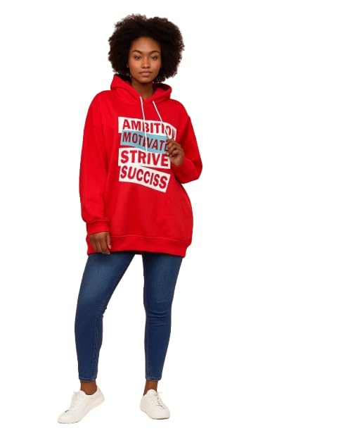 Generic - سويتشيرت بغطاء راس - لون احمر (XXL)، ياقة عالية جدًا